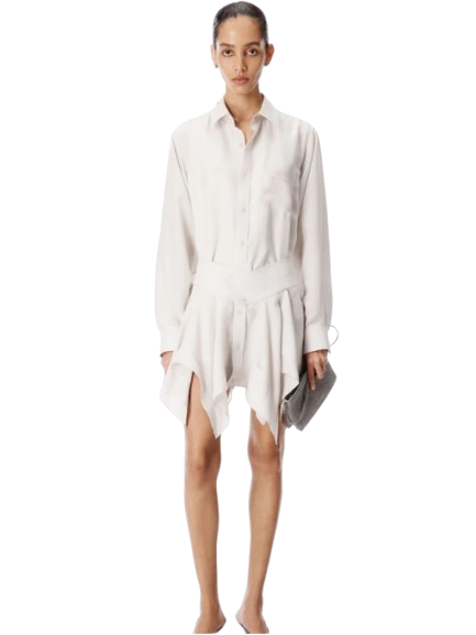 Alexander Wang Layered Shirt Dress.An elevated double shirt dress featuring cut off details. designed to feel styled, intentional and undone.