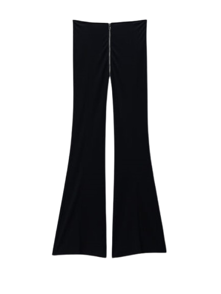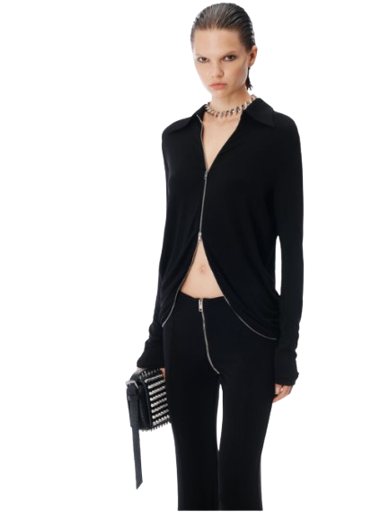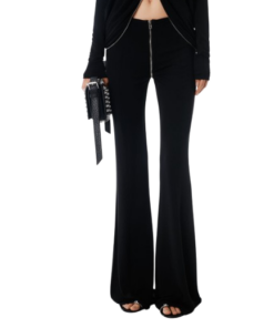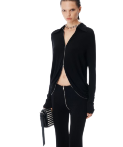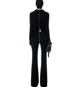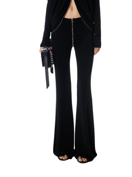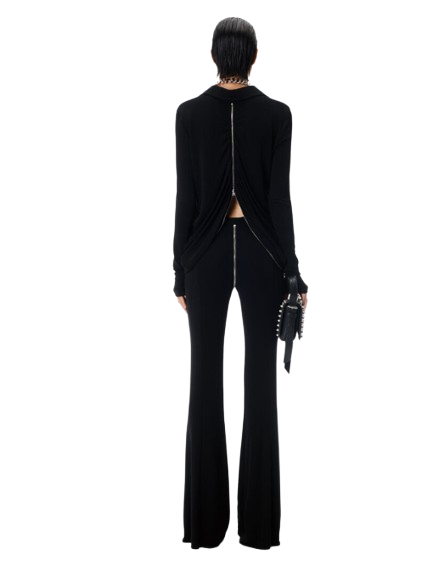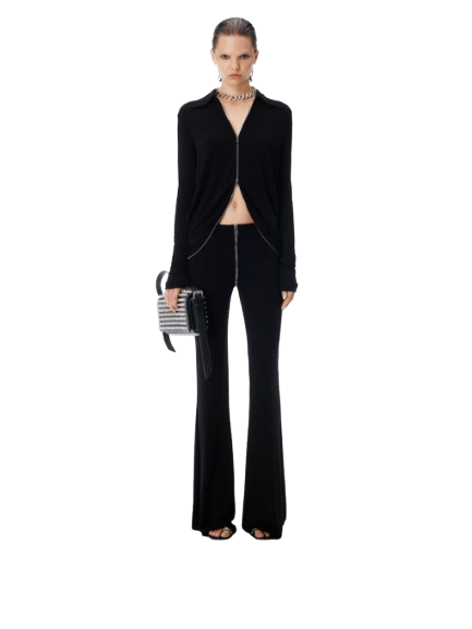 Alexander Wang Mid-Rise Zip Pant in Jersey.Fitted mid-rise pant in crepe matte jersey. Features a center front-to-back zip and flared leg with stacking at hem.