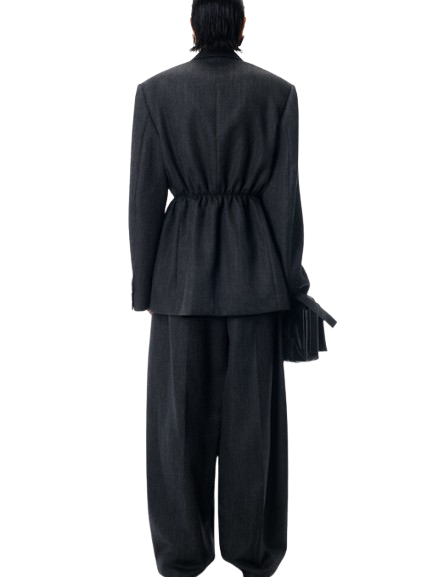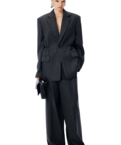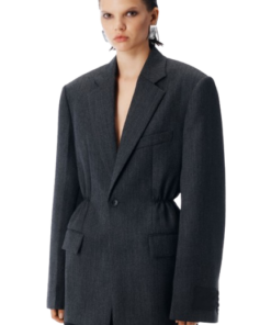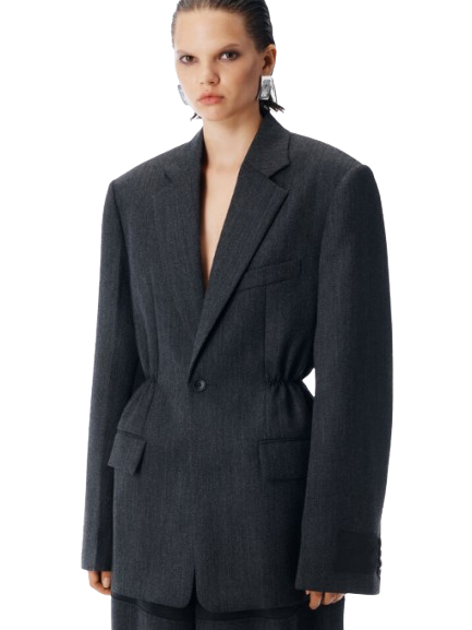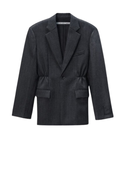 Alexander Wang Oversized Blazer in Wool Twill.Heritage wool twill defines this oversized blazer cut with a boxy silhouette. The ruched waist with zig-zag stitching sharpens the tailoring, while a classic lapel and pocket details balance structure with ease.