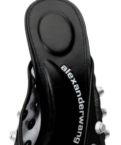 Alexander Wang Rhodes Sandal In Black.Trap studs reimagine this black Chinese slipper-inspired style with a mesh upper sitting on a 105mm heel.