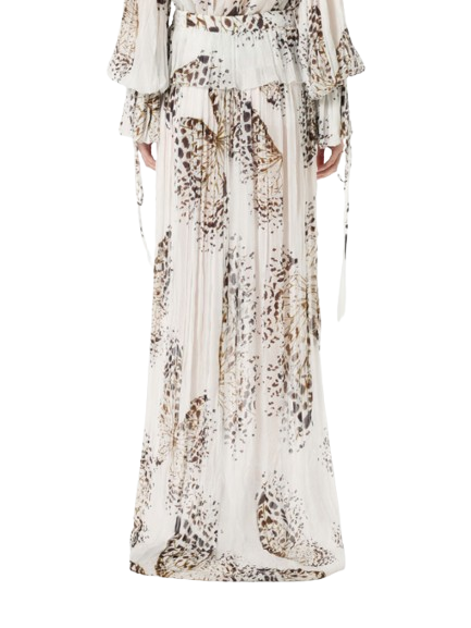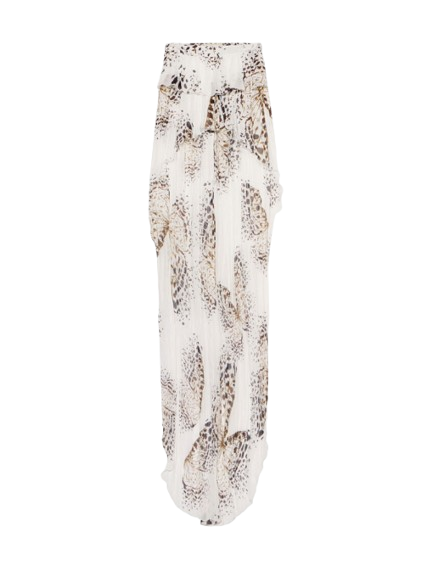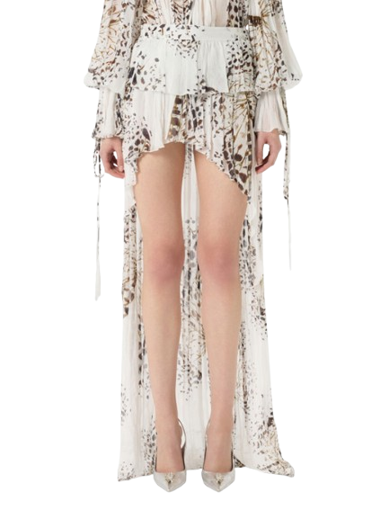 Blumarine Asymmetrical Printed Georgette Skirt With Ruffles.Asymmetrical pleated georgette skirt with butterfly print, featuring a front flounce and a train at the back.