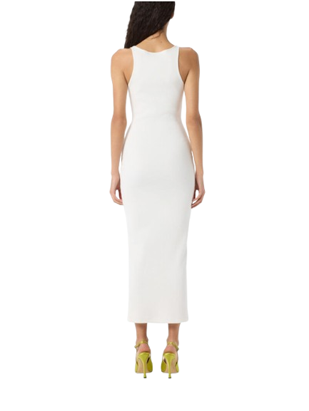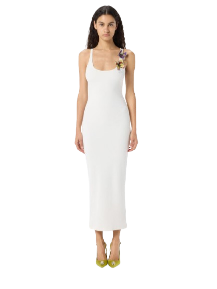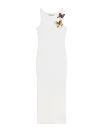 Blumarine Jersey Dress With Butterflies And Monogram.Midi dress in ribbed cotton jersey featuring 3D butterflies and a monogram B embroidered with glass rhinestones.