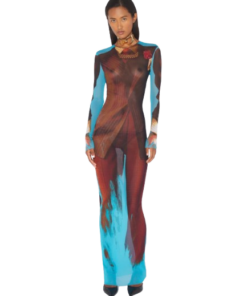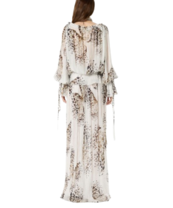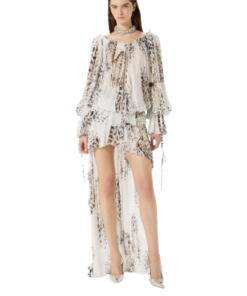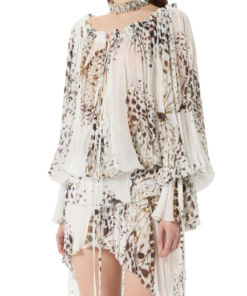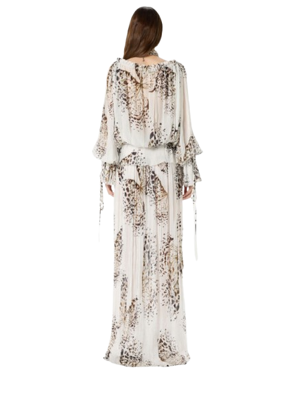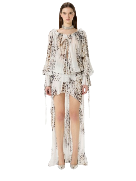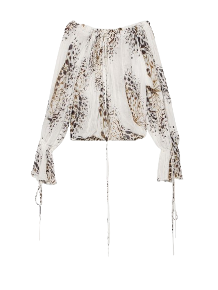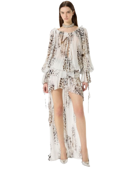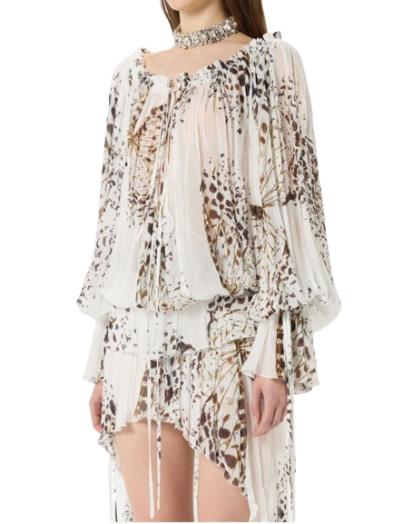 Blumarine Printed Pleated Georgette Blouse.Butterfly print pleated georgette blouse with wide sleeves and flared cuffs.