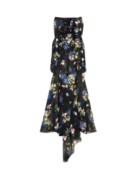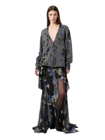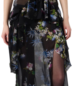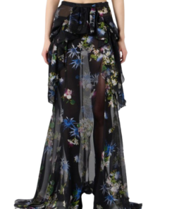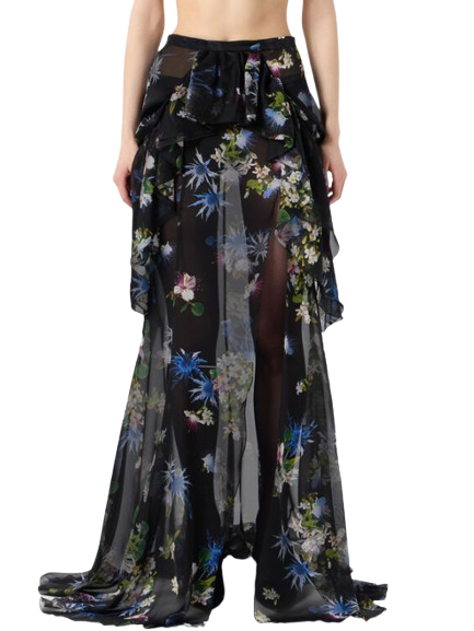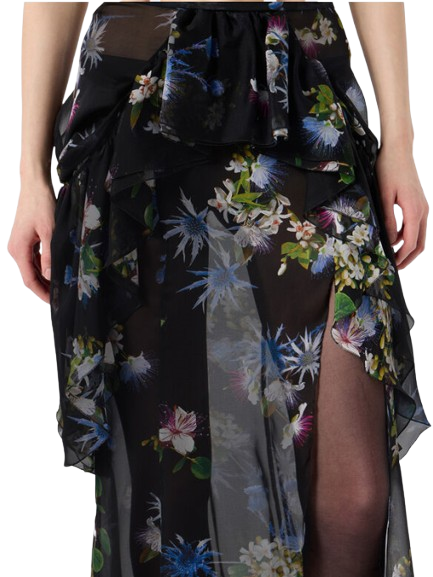 Blumarine Silk Chiffon Printed Skirt With Ruffles.Silk chiffon skirt with bouquet print and applied ruffles at the waist, side slit, short train.Made in Italy.