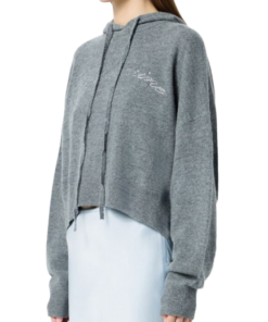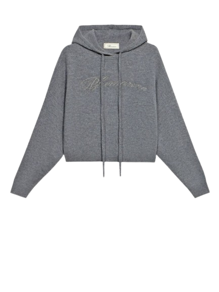 Blumarine Wool Hooded Sweater With Rhinestone Logo.Wool sweater with hood and blumarine logo embroidered in glass rhinestones.
