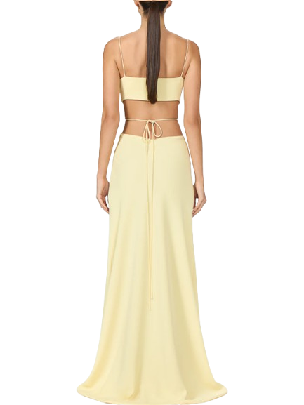 Costarellos Azmira Cutout Crepe Gown In Pale Yellow