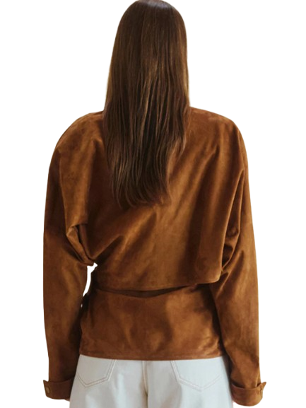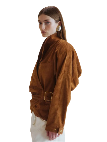 Darkpark Suede Contour Jacket In Brown.Brown Cindy Contour Suede Jacket. Brown suede,asymmetrical design with side strap and adjustable buckle.Chest pocket, fitted silhouette, regular fit.