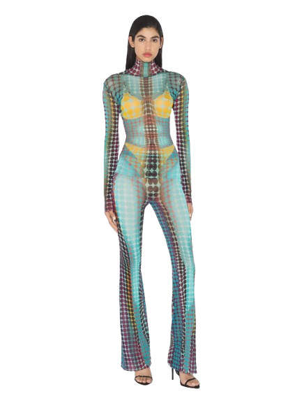 Jean Paul Gaultier Re-edition-The Blue dots Print Pants.Tulle pants with a dots print.Made in Italy.