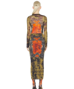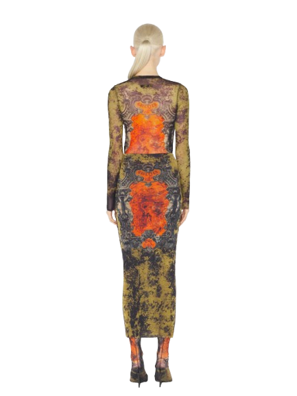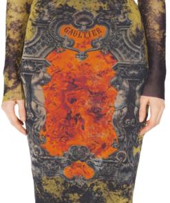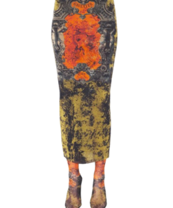 Jean Paul Gaultier The Long Khaki Médaillon Skirt.Long khaki tulle skirt with “Médaillon” print.Tight fit with stretchy material and elastic waistband.Ankle length.