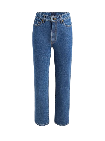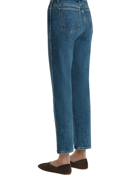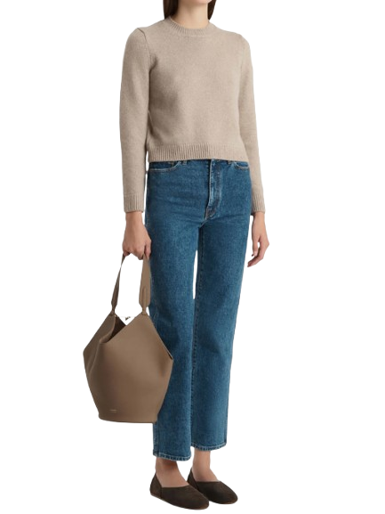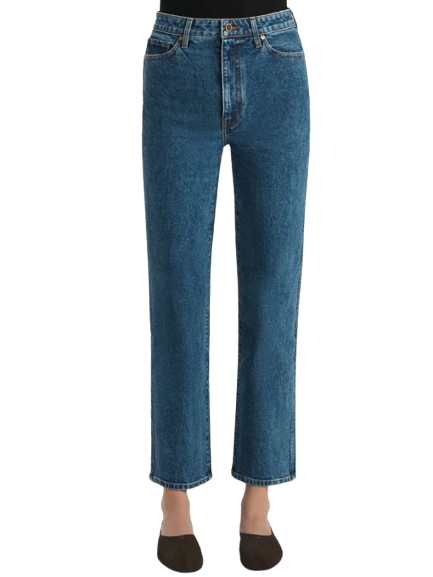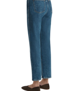 Khaite Abigail Stretch Jean In Boone.A romantic blouse featuring a wide draped collar that falls into an off shoulder neckline at both front and back. The silhouette is cinched at the waist, supported with inner boning for structure, and finished with a full lining. Elastic straps beneath the shoulders ensure stability, while long ties can be styled at the front or back for a versatile finish. Secures with a concealed zip and inner button closure.