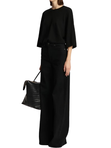 Khaite Dane Stretch Jean In Caryle.Combining the ease of wide-leg trousers with classic five-pocket styling, this high-waisted silhouette elongates the legs with a refined flare below the knee.