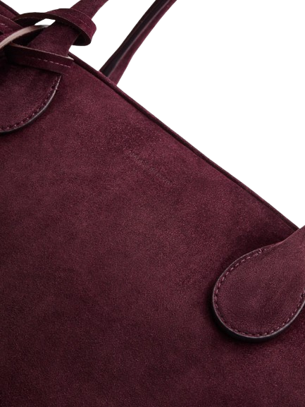 Magda Butrym Brigitte Bag In Purple Suede With Flower Charm.The Brigitte family, a cornerstone of Magda Butrym’s handbag heritage, returns for Pre-Spring 2026 in a refreshed evolution. Continuing its legacy of sculptural minimalism and romantic detailing, the Brigitte is now introduced with a flower charm variation — a nod to the brand’s iconic rose motif. Crafted in both smooth leather and supple suede, the silhouette remains timeless and structured, balancing modern femininity with enduring craftsmanship.