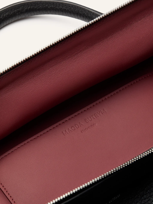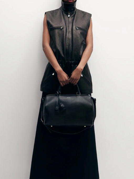 Magda Butrym Varsovia Bag In Black Leather.A tribute to Magda Butrym’s roots in Warsaw, the Varsovia bag is a timeless blend of elegance and versatility. This design features a structured silhouette with both top handles and a detachable crossbody strap. Crafted with meticulous attention to detail, its leather exterior is complemented by a detachable flower charm, adding a signature touch of femininity. Perfect for carrying essentials, the Varsovia bag is a statement of timeless elegance, accompanying you effortlessly as you stride through the city.