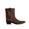 Mm6 Maison Margiela Anatomic Block-Heel Boots.A subtle tension between structure and softness. These mid-ankle boots feature MM6’s signature anatomic toe and rounded block heels, cut in a textured finish that softens in an ombré fade. Finished with the Maison’s signature white stitch line at the back.