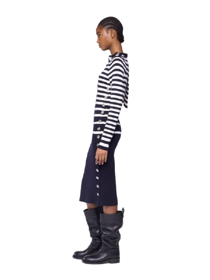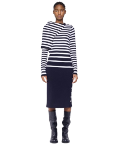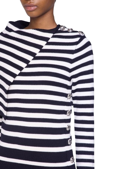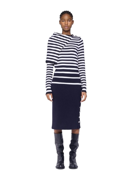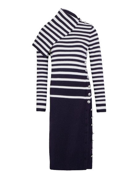 Rabanne Midi Dress In Wool.Midi dress with long sleeves in wool, with oversized roll neck and slit. Silver button details.
