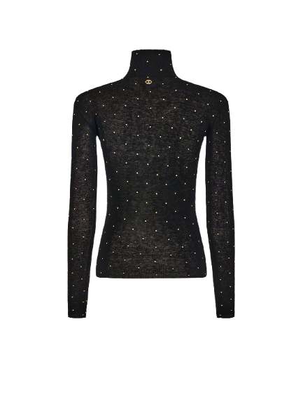 Rabanne Second-Skin-Turtle-Neck Top In Wool.Long sleeves second-skin turtle-neck top in wool with stud details.