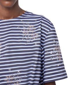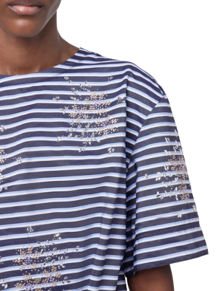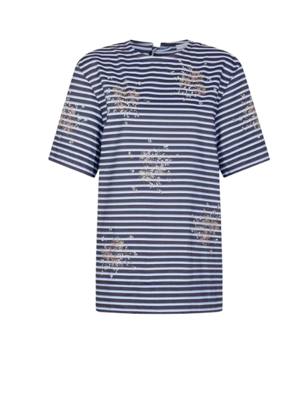 Rabanne Striped White And Blue Embroidered Tee-Shirt In Cotton Poplin