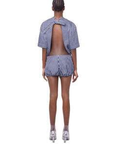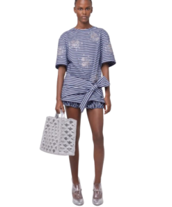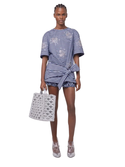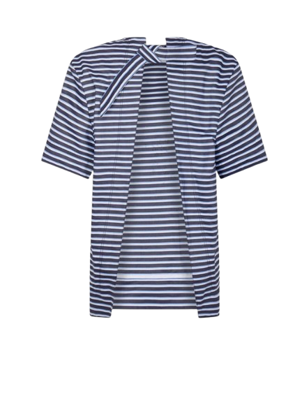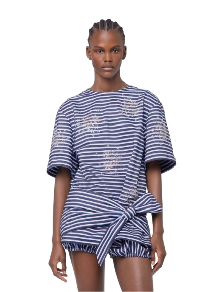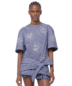 Rabanne Striped White And Blue Embroidered Tee-Shirt In Cotton Poplin.Oversized tee-shirt with short sleeves in striped cotton jersey with hotfix embroidery details.Hotfix embroidery details at the front and bow tie closure at the back of the tee-shirt.