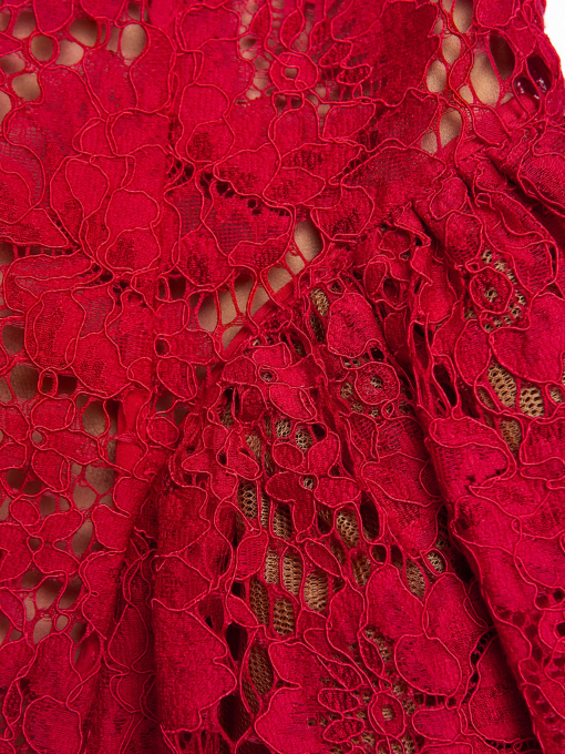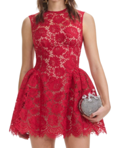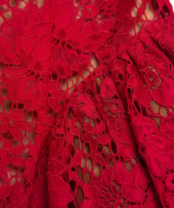 Self Portrait Red Fine Lace Mini Dress.Cut from vivid red lace, this mini dress signals bold romance. A flattering cut comes courtesy of its full flared skirt and gathering detailing.