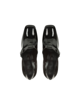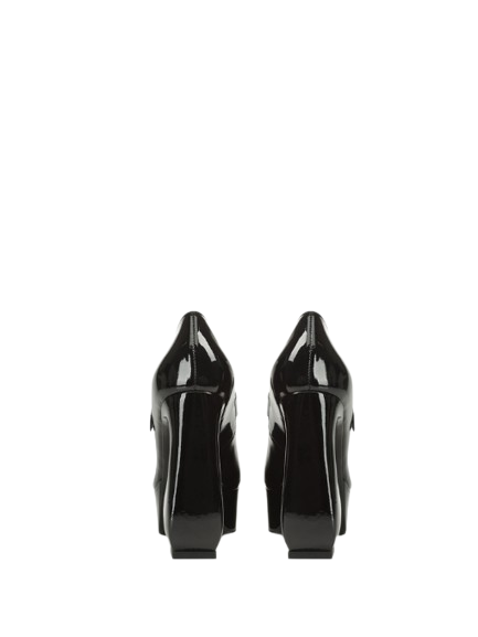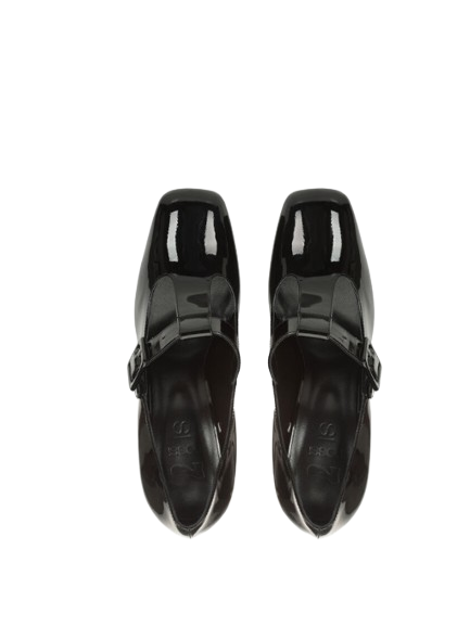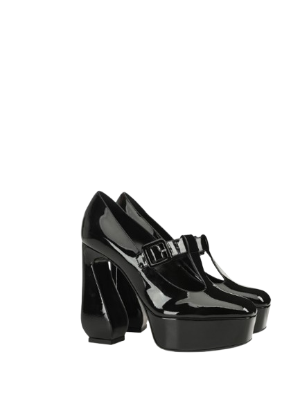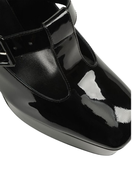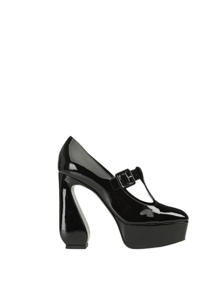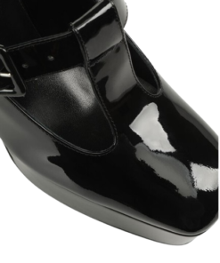 Sergio Rossi Si Rossi Black High Heel.A bold design meets the shine of all-black patent leather in these SI ROSSI pumps, a symbol of decisive femininity. Their sinuous lines feature a sculpted heel and a bold T-structure with a covered buckle, for revitalizing your day-to-night looks with irresistible charm.