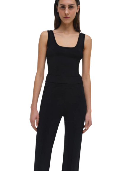 Simkhai Ashlon Pant.The Ashlon Pant in Black.Sleek and structured, these matte compact bottoms offer a refined fit with a polished silhouette, ideal for versatile styling from day to night.