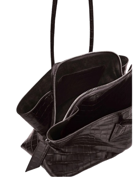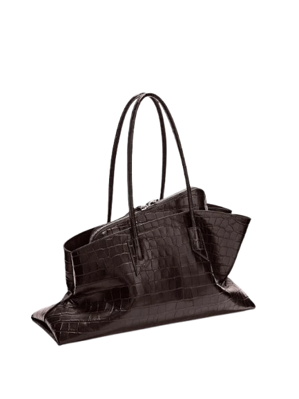 The Attico “La Passeggiata Medium” Coffee Top Handle.”La Passeggiata Medium” top handle bag in coffee crocodile printed leather, internal zip pocket and tubular handles. Made in Italy.
