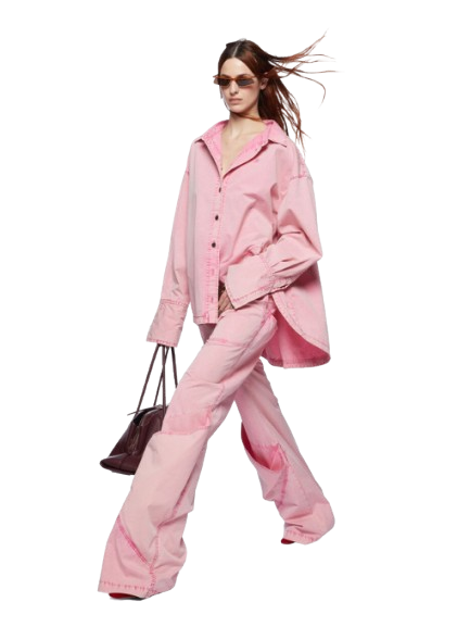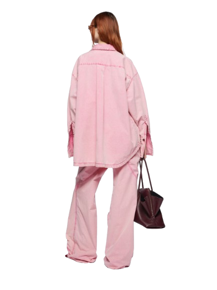 The Attico Pink Long Pants.Long pants in pink marble wash light canvas with pockets on the back and on the knee and embroidered logo.Made in Italy.